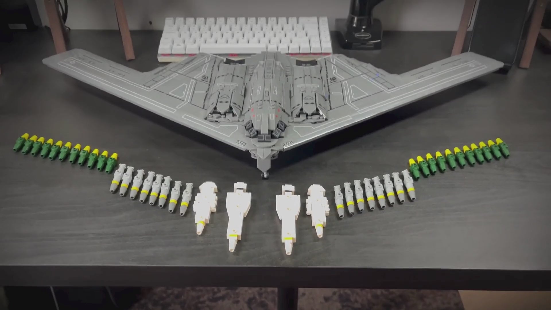 Este modelo com 2063 peças captura a famosa silhueta "asa voadora" do B-2, permitindo que os entusiastas da aviação recriem a aeronave stealth mais avançada da Força Aérea dos EUA. É uma montagem envolvente, ideal para fãs de tecnologia militar e engenharia aeronáutica.