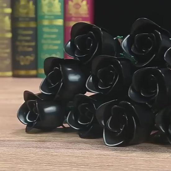 Cada pétala escura, caule e detalhe foi cuidadosamente projetado para transmitir sofisticação e mistério. A montagem se transforma em uma experiência criativa, envolvente e relaxante.