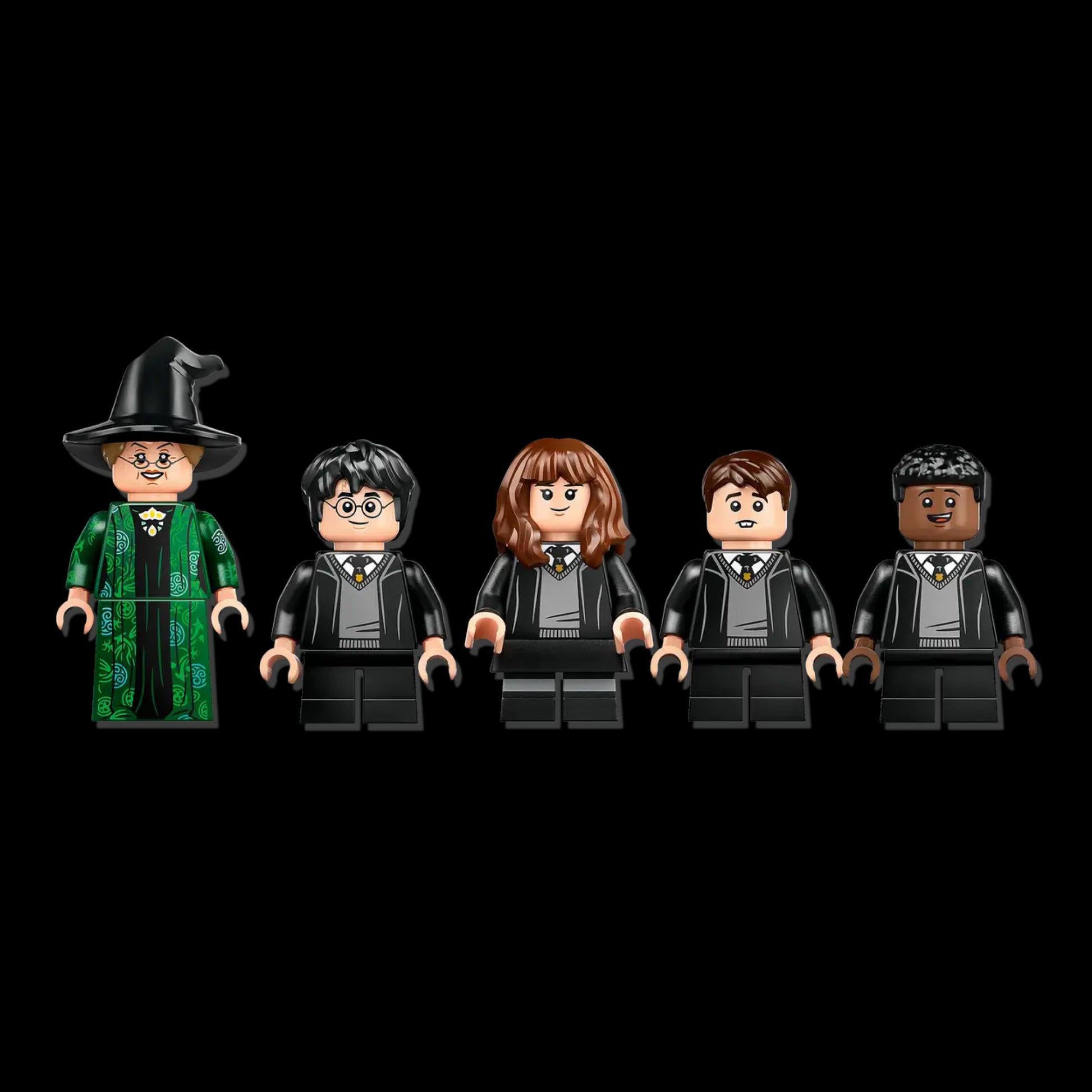🧍 Minifiguras inclusas: Harry Potter, Neville Longbottom, Dean Thomas, Hermione Granger e Professora McGonagall, além das figuras de Hedwig, a coruja, e Trevor, o sapo.