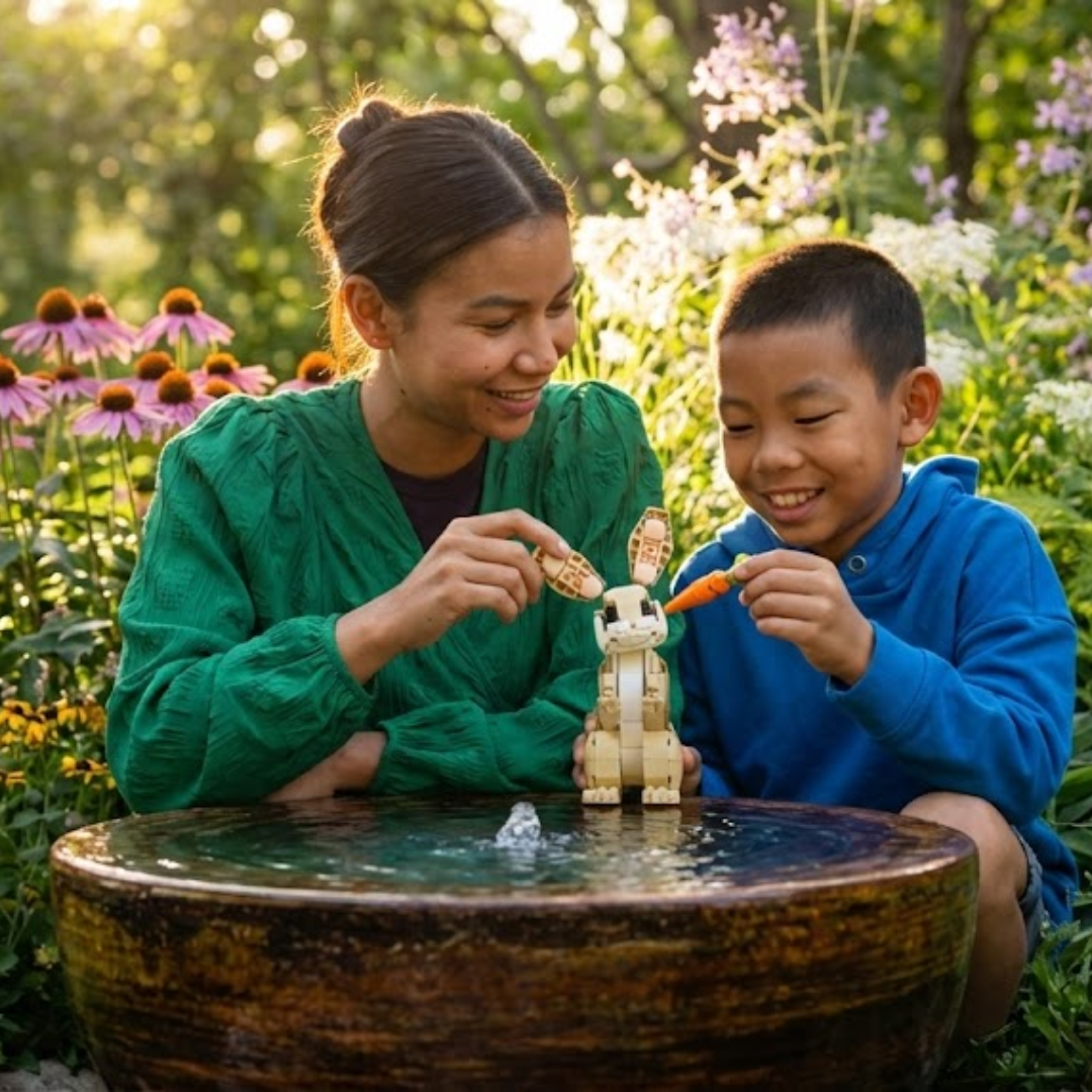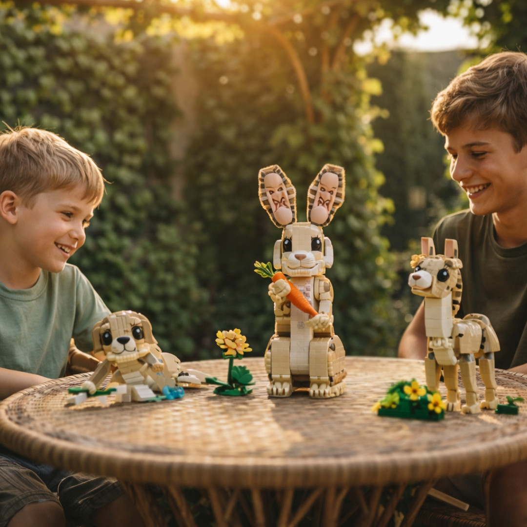 Este conjunto reconstruível de 326 peças entrega exatamente isso: três figuras de animais articuladas, cada uma com seu próprio cenário, todas a partir do mesmo repertório de peças.