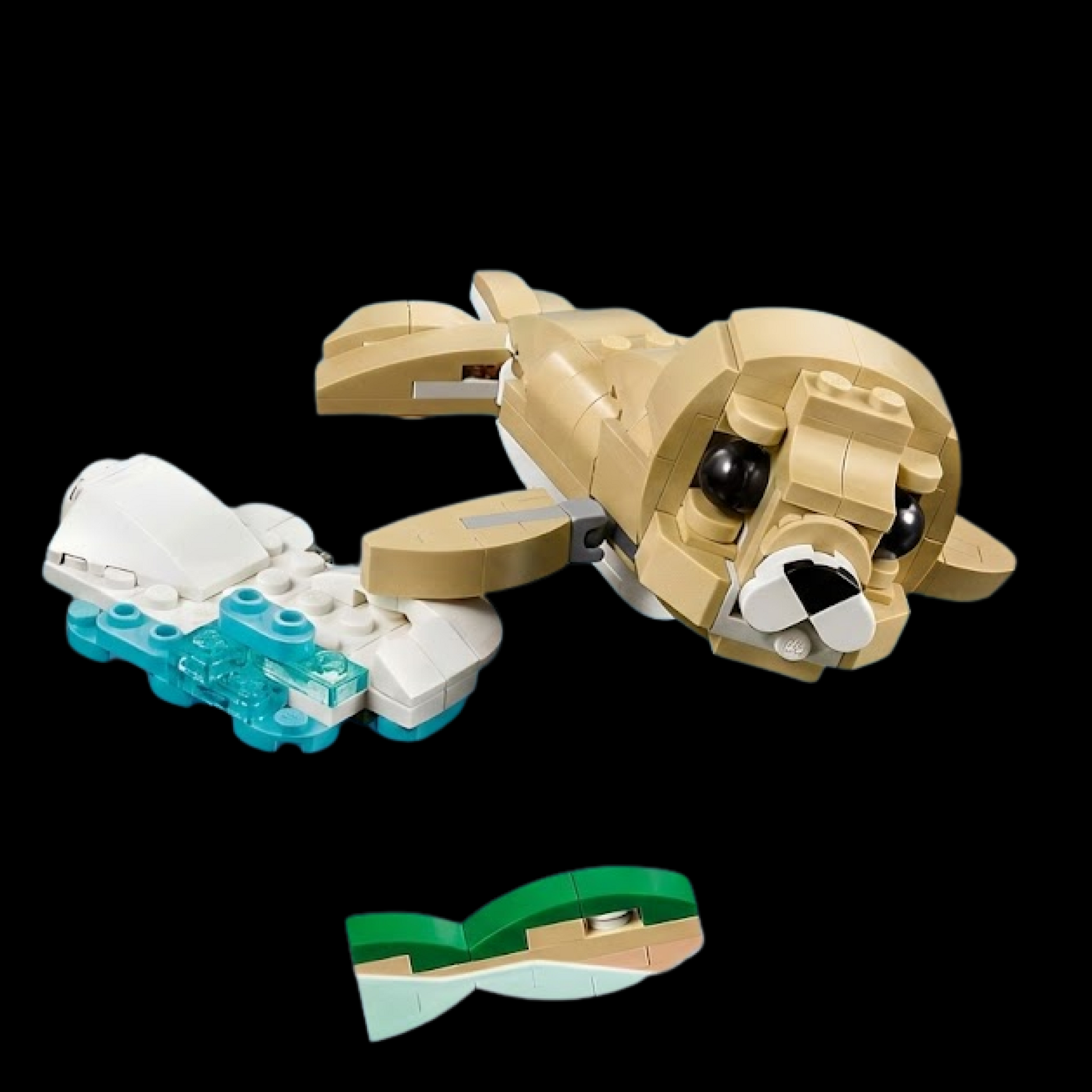 Foca: Cabeça, pescoço e nadadeiras articuláveis para diferentes poses de exibição. Acompanha placa de gelo e peixe para ambientação temática.