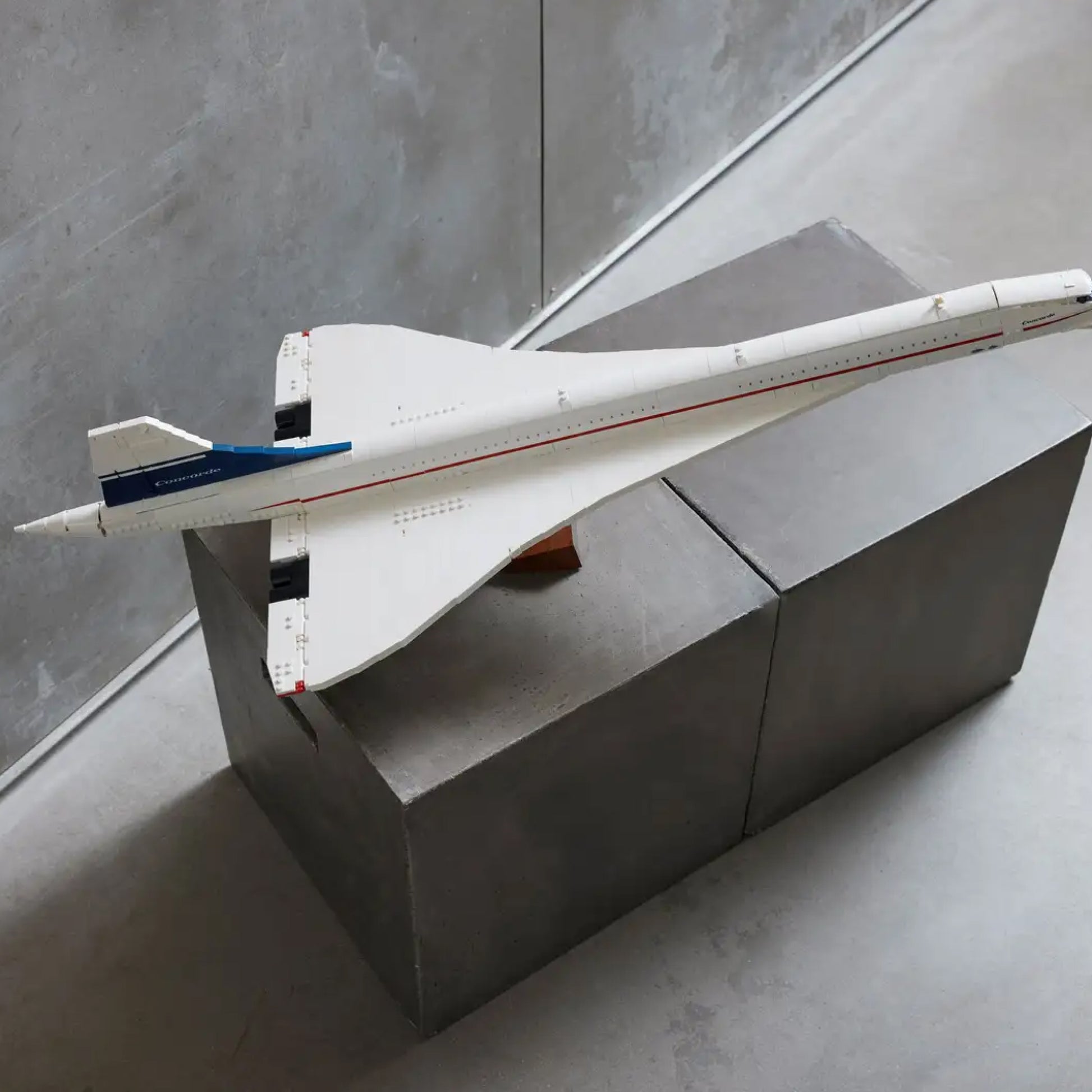 Com 43 cm de envergadura, 15 cm de altura e 105 cm de comprimento ao final da montagem, o Concorde impõe a mesma presença monumental da aeronave real em qualquer ambiente de exposição.