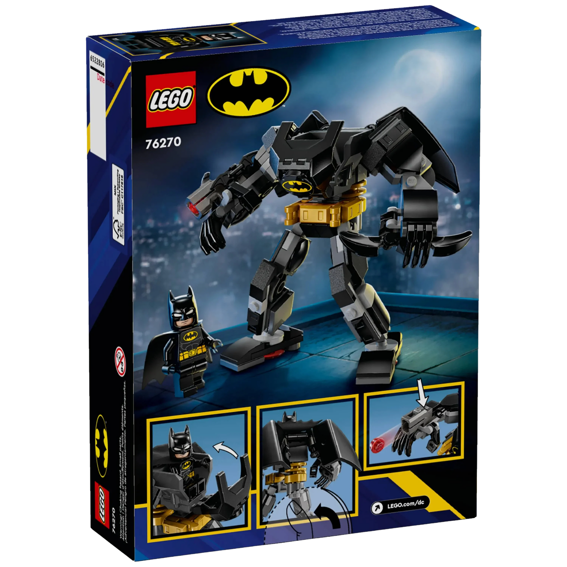 🔫 Acessórios inclusos: Canhão no braço e espaço para o Batman pilotar o mech.