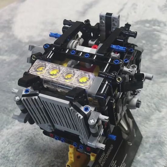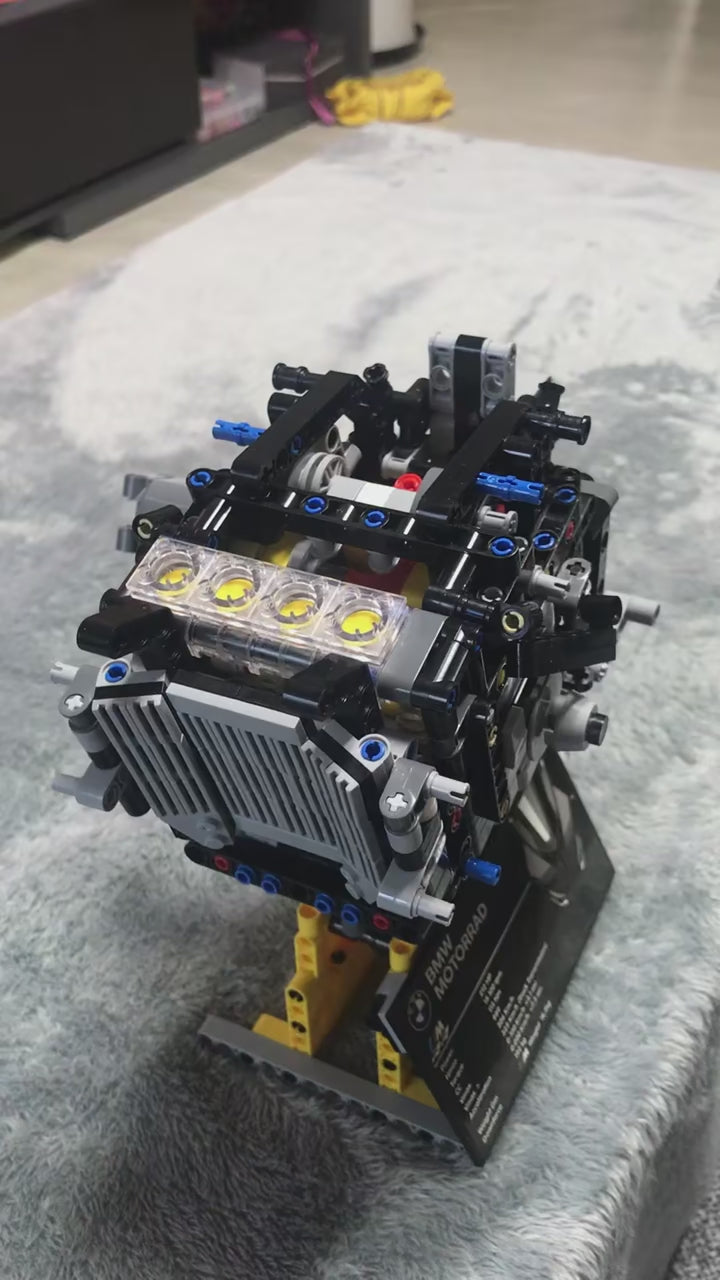 Motor 4 cilindros com pistões funcionais: Os pistões se movimentam conforme as rodas giram, tornando cada deslocamento da moto uma demonstração viva da mecânica interna.