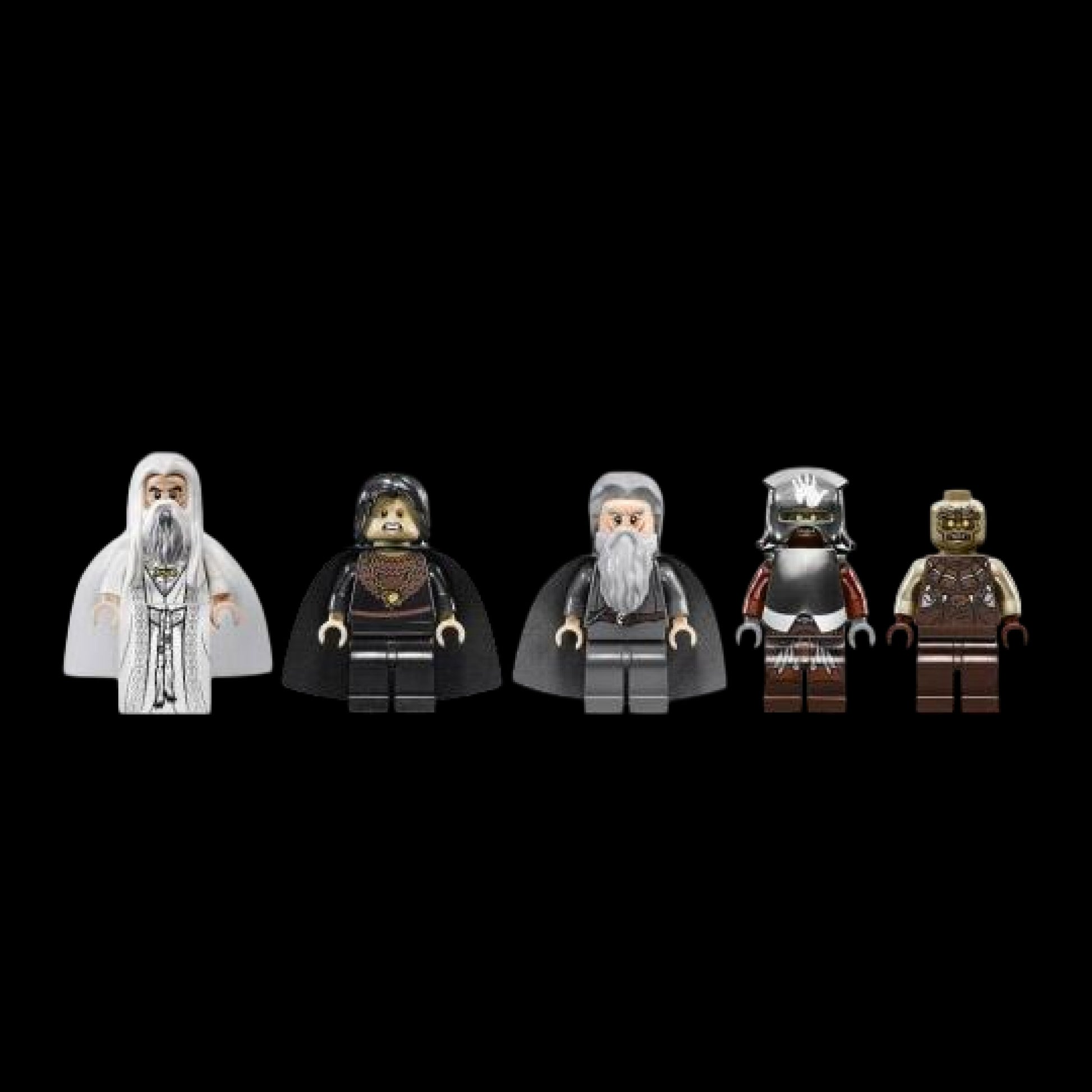 🧍 Minifiguras: Saruman, Gríma Wormtongue, Gandalf (o Cinzento), Uruk-hai e Orc Pitmaster