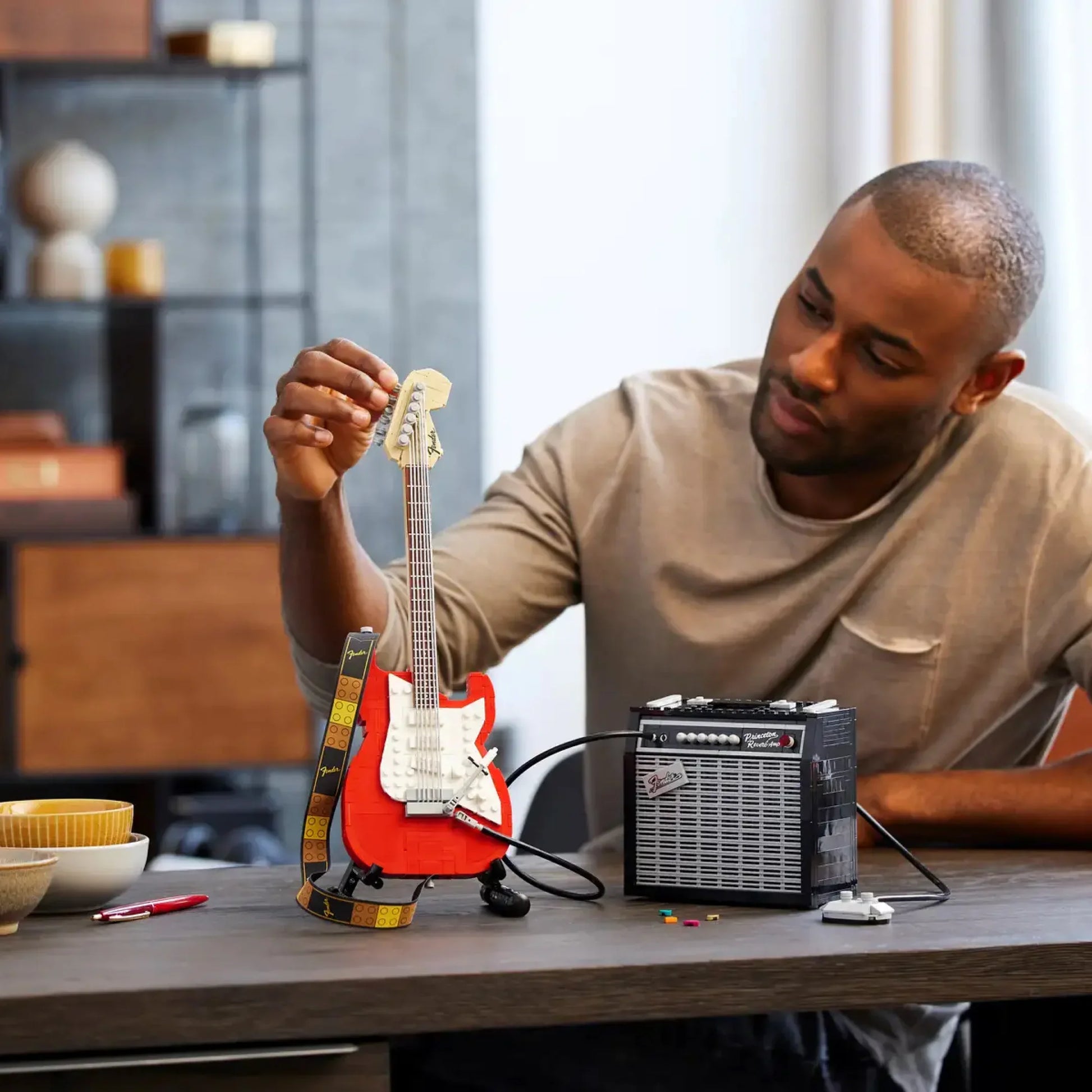 Dê vida a um ícone da música com este conjunto de 1.074 peças. A famosa Stratocaster, usada por lendas como Jimi Hendrix, Eric Clapton e David Gilmour, agora pode fazer parte da sua coleção.