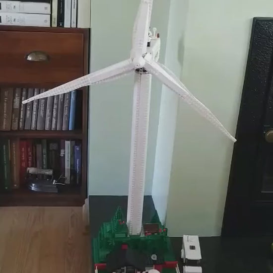 O conjunto de blocos de montar "Turbina Eólica" é uma réplica detalhada de uma turbina eólica real, composta por 826 peças.