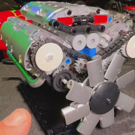 O kit vem equipado com um motor elétrico e uma bateria recarregável, permitindo que o modelo ganhe vida ao reproduzir os movimentos de um motor V8 em funcionamento.